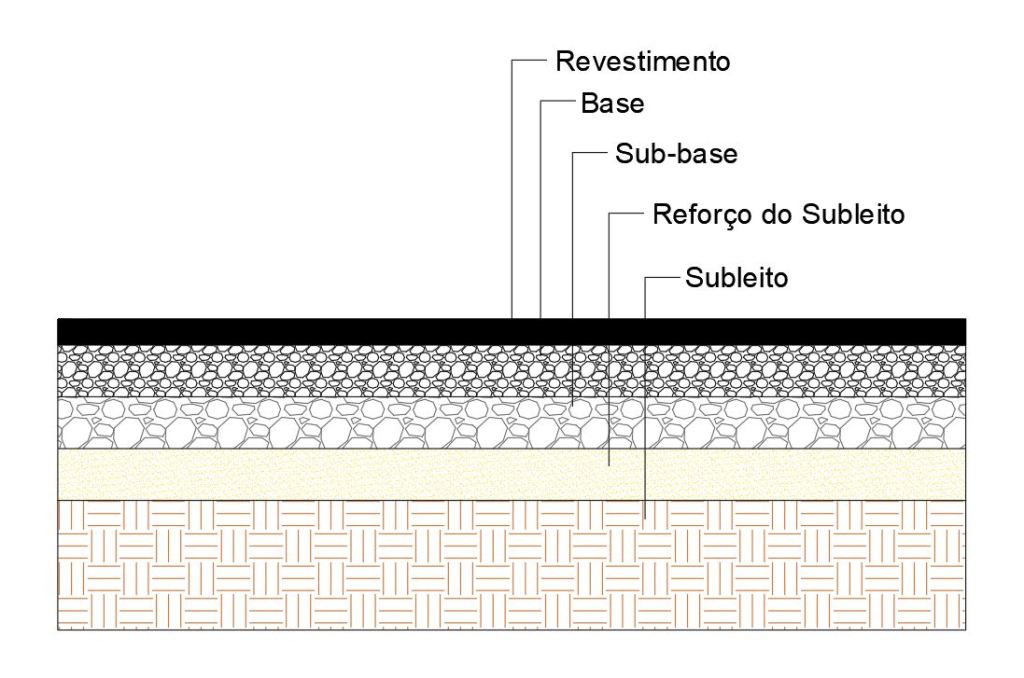 Bernucci et al (2008) define o pavimento como uma estrutura composta por múltiplas camadas de espessuras finitas e construída sobre a terraplenagem, destinada técnica e economicamente para resistir esforços do tráfego e do clima e, além disso, proporcionar condições de rolamento com conforto, economia e segurança.