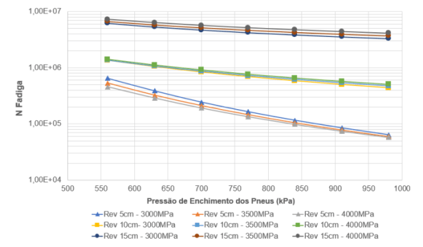 Figura 4 – Vida útil à fadiga em função da pressão de enchimento dos pneus (CAVA, 2021).