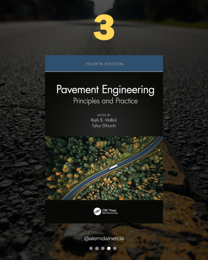 Confira agora um carrossel com 3 indicações de livros em inglês sobre pavimentação que todo engenheiro da área deveria conhecer!